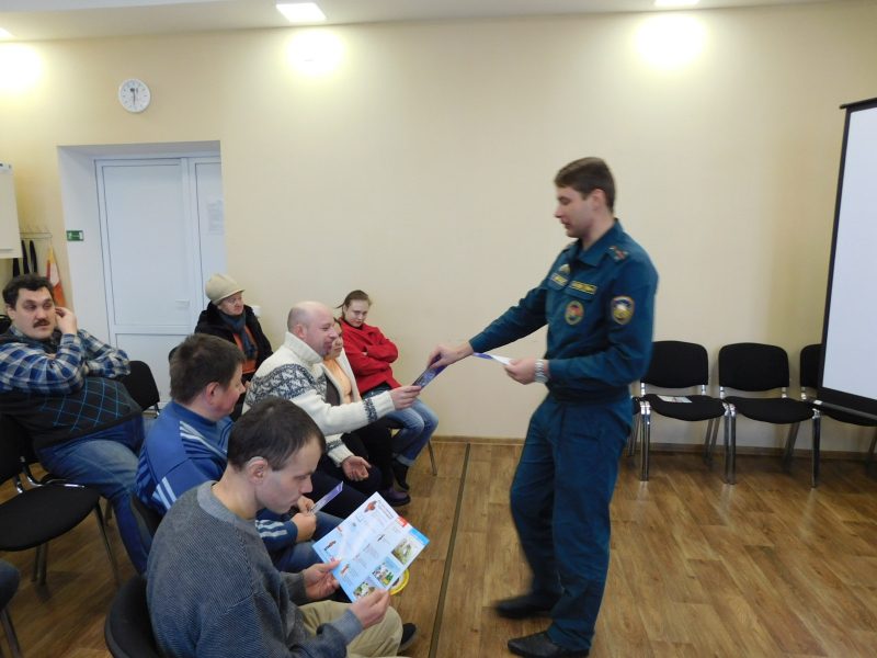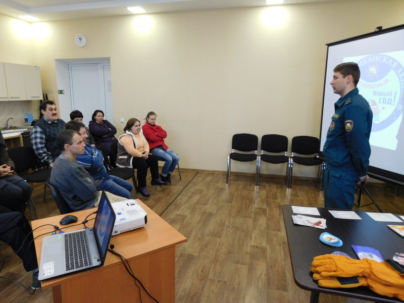 Инспектор провел профилактическую беседу с инвалидами и пенсионерами. С присутствующими проводились викторины, а также был продемонстрирован фильм о правилах пожарной безопасности во время празднования новогодних и рождественских праздников. После просмотра фильма инспектор напомнил о правилах пожарной безопасности при использовании электрооборудования и пиротехнических изделий. Во время всей беседы инспектор отвечал на возникающие у присутствующих вопросы.