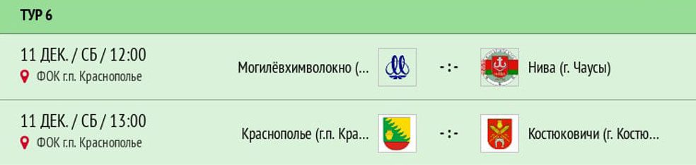 В эту субботу, 11 декабря, в спортивном зале Краснопольского ФОКа пройдут 2 игры 6 тура чемпионата Могилевской области по мини-футболу группы Б.