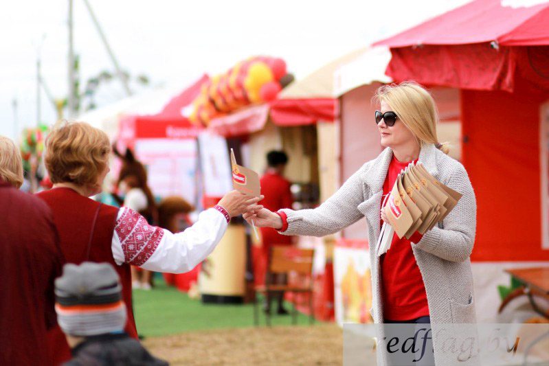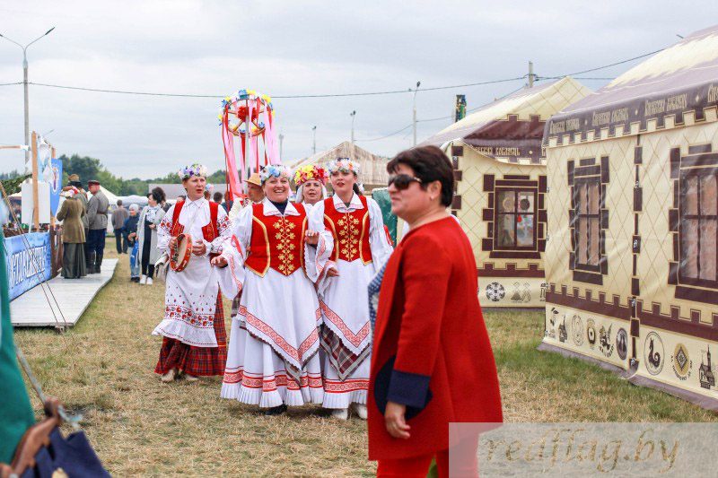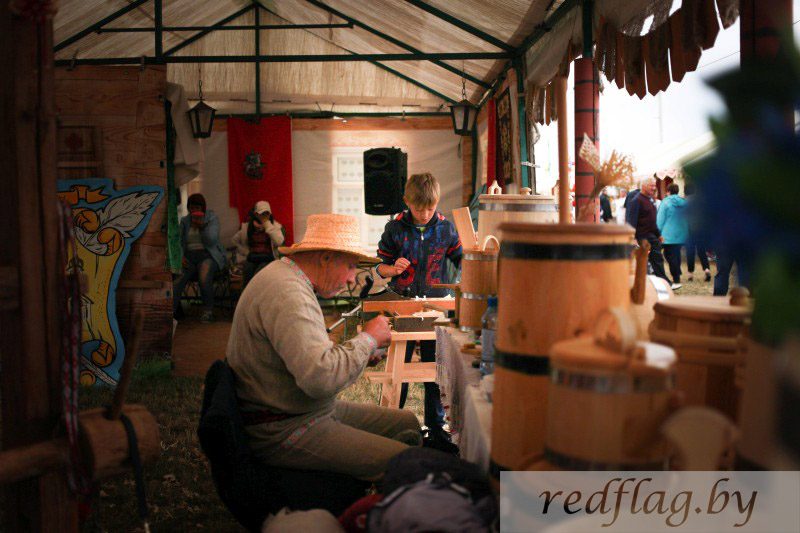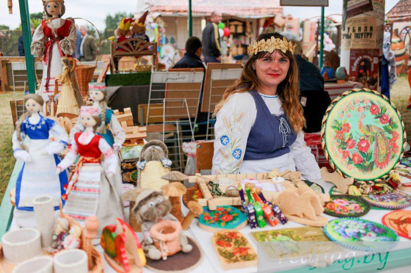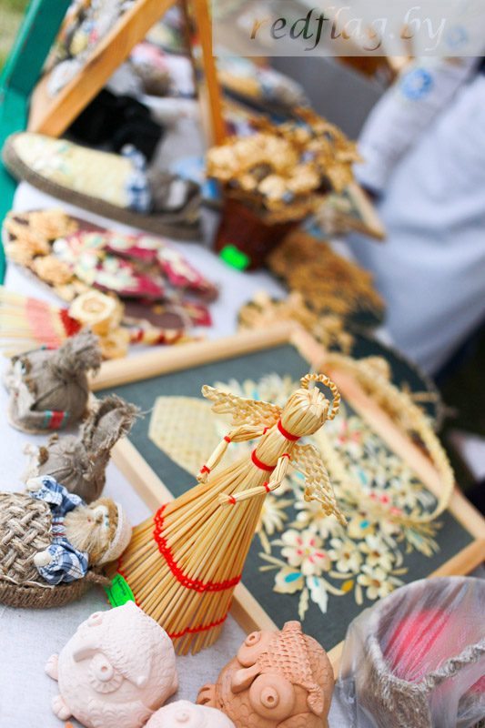 Краснополье привезло свои изделия и презентацию регионального фестиваля любительских театров. И если последний является постоянным, легко узнаваемым брендом нашего края, то представленные работы Краснопольского районного дома ремесел удивили большим количеством новинок. Выставка привлекала куклами в разных техниках исполнения, а окружали их самые разные изделия из дерева, лозы, глины и соломы: салфетницы, обручи, чашки, горшочки, корзины, венки и красочные панно ручной росписи. Публика фестиваля давно знакома с нашими мастерами и охотно покупает их занятный товар. Покупатели знают, что Краснополье привозит не только красивые, но и качественные сувениры, которые ещё очень долго будут радовать глаз. Тем временем на малой сценической площадке публика наслаждалась выступлением народного ансамбля народной песни «Шчадрэц». И на протяжении праздничных дней в наш импровизированный дворик завлекал Краснопольский районный Центр культуры, демонстрируя отрывки из известных народных сюжетов.