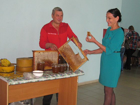 Продукцию собственного производства: мед, пчелиный воск и другую натуральную продукцию из меда представил местный пчеловод В.В. Конохов. Участники акции имели возможность не только приобрести сладкую, целебную продукцию, но и получить дельные советы мастера-пчеловода о целебных свойствах меда и его использовании.