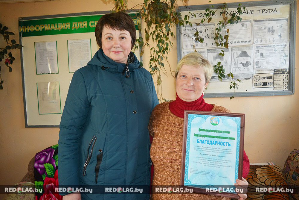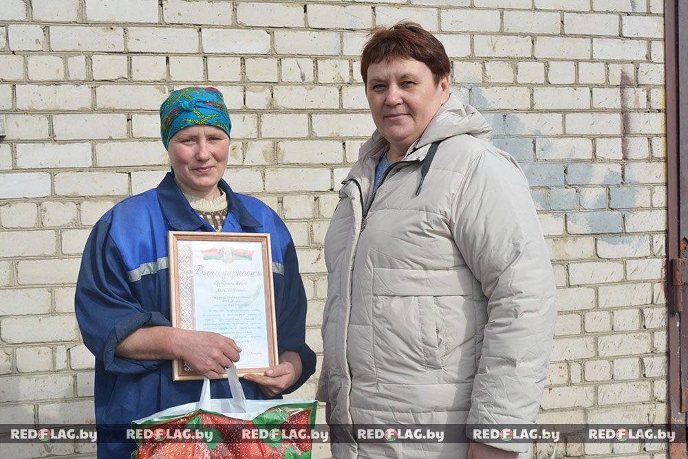 Председатель районного комитета профсоюза работников АПК Тамара Кожемяко вместе с экономистом, председателем профкома ОАО «Краснопольский» Тамарой Шарлап выехали на молочно-товарные фермы и комплексы, чтобы на рабочих местах поблагодарить животноводов, операторов машинного доения за труд, отметить лучших работников отрасли.