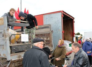 Наибольшее количество покупателей, впрочем, как и всегда, в тот день стояло у машины ОАО «Краснопольский». Свою продукцию открытое акционерное общество реализовывало по низким ценам, а потому и пользовалась она спросом. Так, картофель сельхозпредприятие предлагало по 25 коп., пшеницу по 33 коп., овёс по 24 коп., ячмень по 28 коп. Не было отбоя от желающих купить что-либо. Тем более, что подвезти мешок зерна или картошки можно было за умеренную плату транспортом учреждения «Краснопольский РЦСОН».