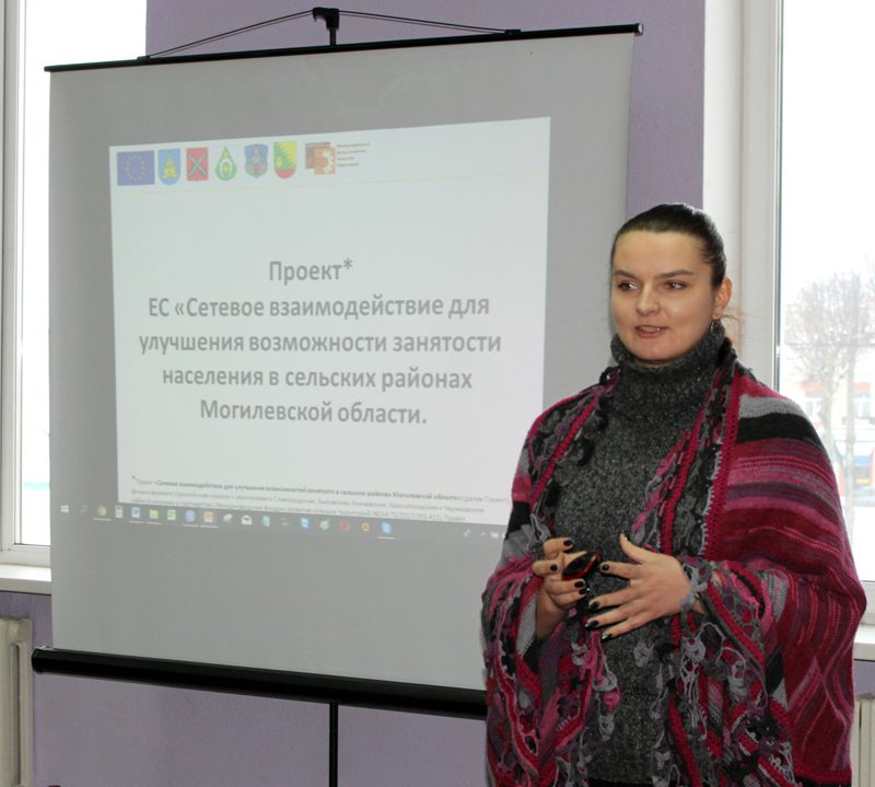 Во второй части семинара В.И. Викторчик, специалист по экономике и инвестициям Международного фонда развития сельских территорий, выступила с презентацией о перспективах нового в районе проекта «Сетевое взаимодействие для улучшения возможностей занятости населения в сельских районах Могилевской области», финансируемого Европейским Союзом. Проект начал действовать с 1 января 2019 года в Могилевской области и реализуется в Славгородском, Краснопольском, Чериковском, Кличевском, Быховским райисполкомах при методологической поддержке Международного фонда развития сельских территорий.