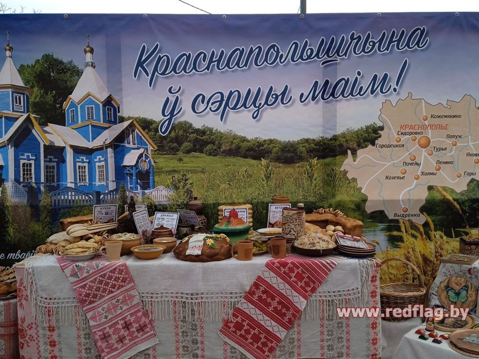 Атмосферу праздника создавали красочно оформленные презентационные площадки каждого района. «Свята коласа» — такой была тематика Краснопольского подворья.