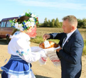 На границе Краснопольского и Красногорского районов гостей встречала заместитель председателя райисполкома Е.И. Чаюкова. А преподнесенный им хлебный каравай Краснопольской земли стал своеобразным символом уважения и гостеприимства белорусов к братьям-россиянам.