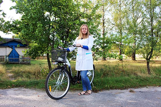 У А.С. Царевой (на снимке), рабо­тающей заведующей фельдшерско­акушерским пунктом в д. Городецкая, на попечении жители нескольких де­ревень: Устиновичи, Медведовка, Сычин, Навина. И почти до каждой нужно преодолеть не один километр. Поэтому, несмотря на то, что Анна Станиславовна является молодым специалистом, пришедшим работать на ФАП только в начале августа те­кущего года, она уже успела ощутить насколько нелегко выполнять свои профессиональные обязанности без необходимой техники для передвиже­ния.