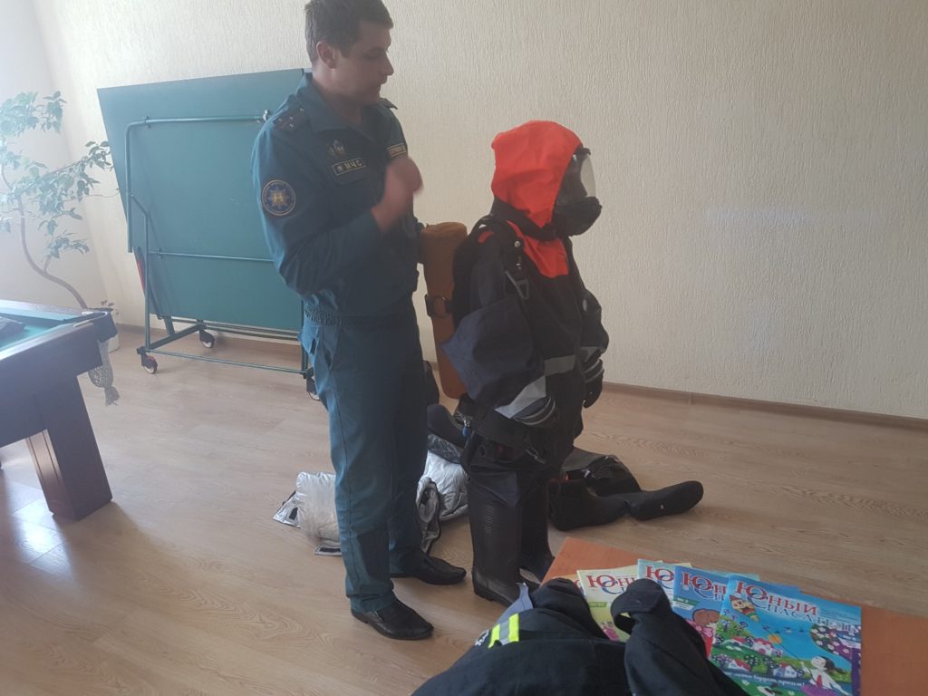 Спасатели показали детям пожарную аварийно-спасательную технику, также показали и рассказали об оборудовании, которое используются при тушении пожаров. Дети узнали историю пожарной службы, а также примерили на себе костюмы и боевую одежду, которую спасатели используют при ликвидации чрезвычайных ситуаций. В завершении экскурсии спасатели напомнили детям о правилах безопасности жизнедеятельности, продемонстрировали мультфильмы из серии «Волшебная книга» и пригласили заходить еще.