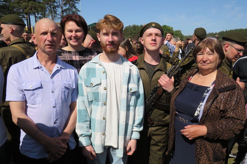 Никита Юденков из аг. Турья призван в автомобильные войска, военная специальность – аккумуляторщик ремонтной роты, по словам мамы Ирины Артемовны, чувствовал себя в этот день уверенно. И неудивительно, ведь он знал, что среди огромного количества наблюдающих за присягой людей есть семь человек, чьи взгляды ловят каждое его движение.