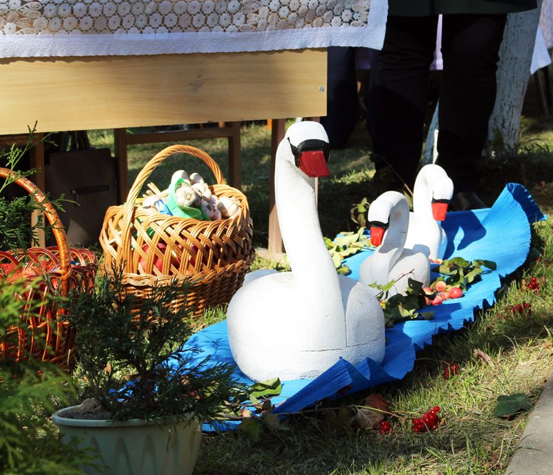 Непохожим на другие оказалось подворье Краснопольского райпо, завоевавшее третье место за оформление. Свое хозяйство они отгородили плетёным заборчиком, по периметру которого усадили кукол в национальных костюмах. Из лозы и дерева сделали воротца, в которых радушно встречали комиссию хлебом-солью. А на внутренней площадке гостей ждали накрытые яствами столы.