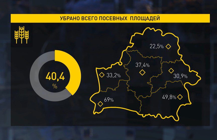 Сегодня аграрии этого южного региона намерены взять миллионную планку. 740 тыс. тонн на счету Минской области. Преодолела полмиллионный рубеж Гродненщина. В Могилевской области намолот составляет 324 тыс. тонн. Меньше всего пока намолотили аграрии Витебщины – почти 270 тысяч тонн. Но они и позже всех начали уборочную кампанию. Всего по стране убрано более 40% зерновых и зернобобовых. На счету лидера – Брестской области – 69% площадей.