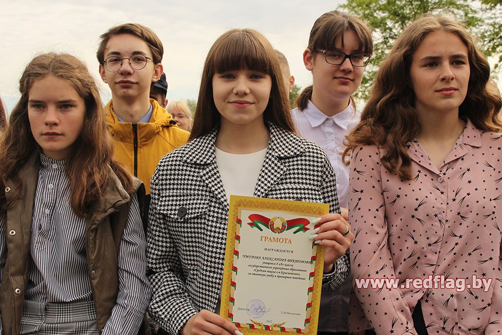 Последний звонок – это возможность подвести итоги года. А они у педагогического и ученического коллективов заслуживают уважение. Грамотами отдела по образованию, спорту и туризму райисполкома были награждены 48 учащихся 4-11-х классов, победителей районных олимпиад по учебным предметам.