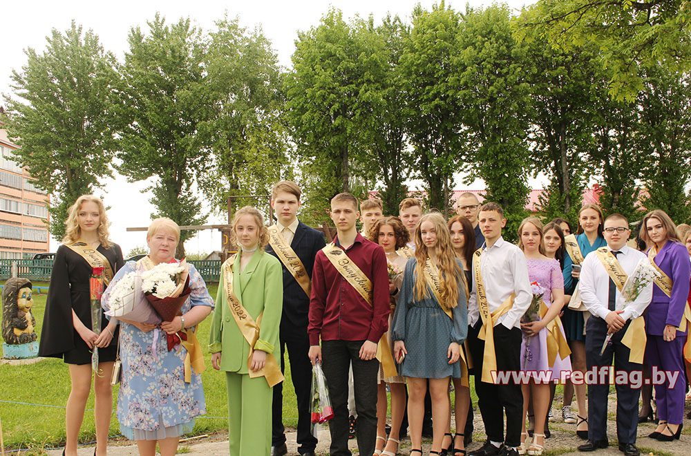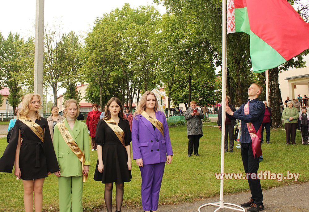 Лучшим выпускникам школы: Елизавете Бобровой, Хромченко Максиму, Драенковой Карине, Ананьевой Екатерине, Сандрыгайло Анне было предоставлено право поднять Государственный флаг Республики Беларусь.