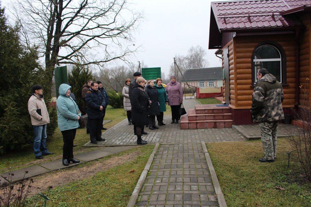 Посещение населенного пункта началось с административного здания Старинского лесничества ГЛХУ «Краснопольский лесхоз», где гостей приветствовал лесничий Старинского лесничества А.И. Козловский. Алексей Иванович дал краткую характеристику лесничеству, рассказал о проводимой коллективом работе по благоустройству закрепленной территории.