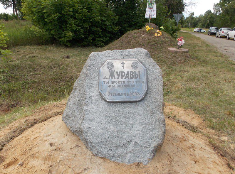 Апошнія словы жанчыны заміраюць на вуснах, а на вачах наварочваюцца слёзы. Што сёння яны, жураўцы, могуць зрабіць для роднай вёскі? Наўрад ці ўзрадзіцца ў бліжэйшыя дзесяцігоддзі жыццё ў гэтых маляўнічых мясцінах. Ці ёсць у тым сэнс? Але ж пакінуць памяць аб любым сэрцу куточку Краснапольшчыны насельнікі чарнобыльскай вёскі палічылі сваім абавязкам. Сабраліся, параіліся і ўстанавілі сёлета на Купалле памятны камень с таблічкай. А на ёй выгравіраваны надпіс: «д. Журавы. Ты прости, что тебя мы оставили… Отселена в 2002 г.» На таблічцы крыж ды анёлы – нябесныя ахоўнікі вёскі, якую ўжо немагчыма зберагчы.