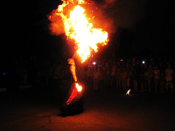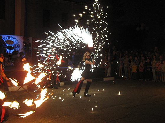 С новой программой приехали и участники театра огня «Atesh» г. Гомеля. Краснопольчанам они уже полюбились по фестивалю 2014 года. За это время театр получил звание народного любительского коллектива. Достаточно успешно заявил о себе в Международном фестивале светового шоу, проходившем в Гомеле в прошлом году. Сейчас активно работают над этим направлением. В Краснополье они приехали, чтобы вновь заворожить и удивить его жителей замечательным огненным выступлением. И хотя состав частично поменялся, это не помешало им представить свою новую программу «Супернатуралс». Это фаер-шоу раскрывает возможности человеческого тела и показывает зрителю, чего может достигнуть человек путем духовного и физического развития. Для усиления эффектов в программе участники использовали композиции в стиле рок, потому что именно он, по их словам, дает эффект брутальности, могущества, суперсилы и обладает мощным энергетическим и эмоциональным воздействием. И, как и в прошлый раз, в этот «Atesh» вновь был на высоте, покорив зрителя прекрасным и оригинальным выступлением.
