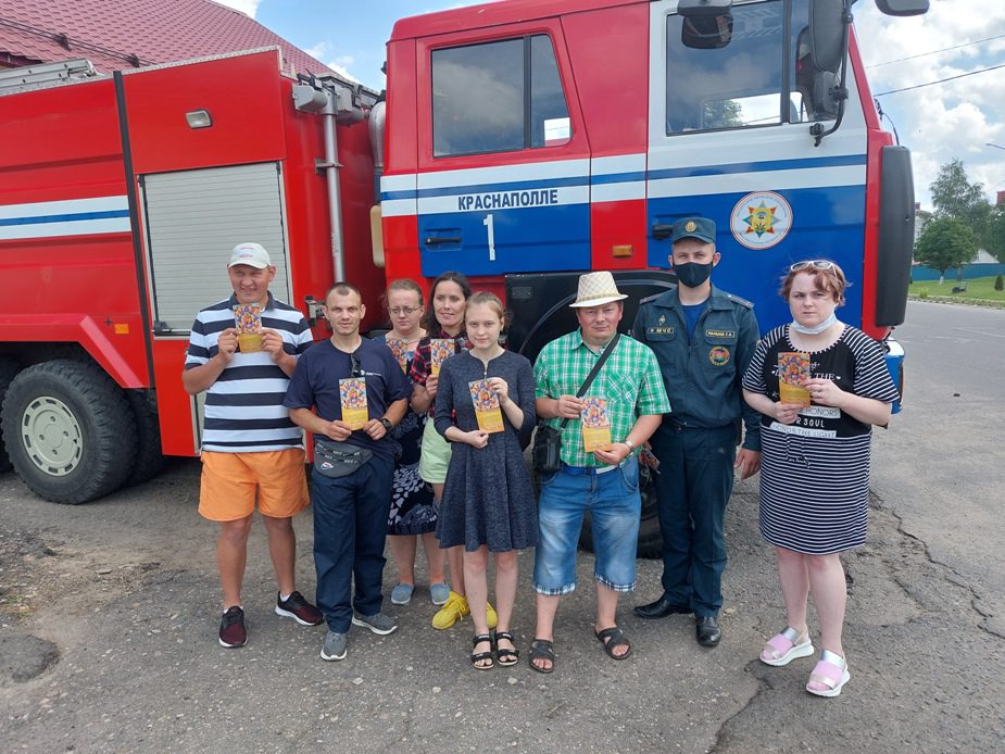 На этот раз гости к спасателям пришли из отделения дневного пребывания инвалидов Краснопольского районного центра социального обслуживания населения. Людям с ограниченными возможностями показали и рассказали про работу спасателей-пожарных. Продемонстрировали работу техники и оборудования, провели экскурсию по пожарной аварийно-спасательной части, показали и рассказали про помещения, которые находятся внутри ПАСЧ. Также инспектор СПиВО провел профилактическую беседу с присутствующими, напомнил номера пожарной службы, необходимые действия в случае возникновения пожара. В завершение мероприятия всем раздали наглядно-изобразительную продукцию и сделали общее фото на память о посещении пожарной части.