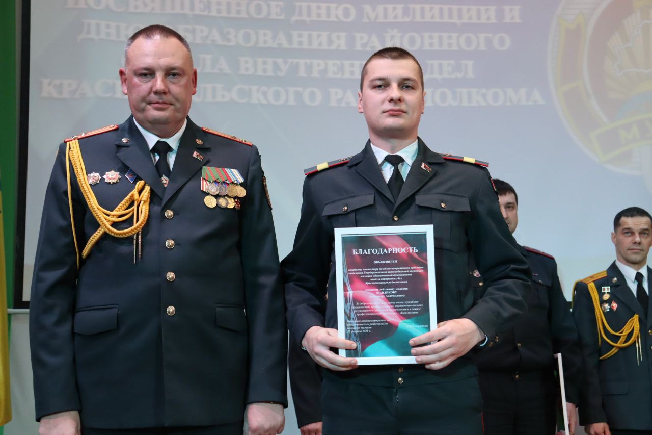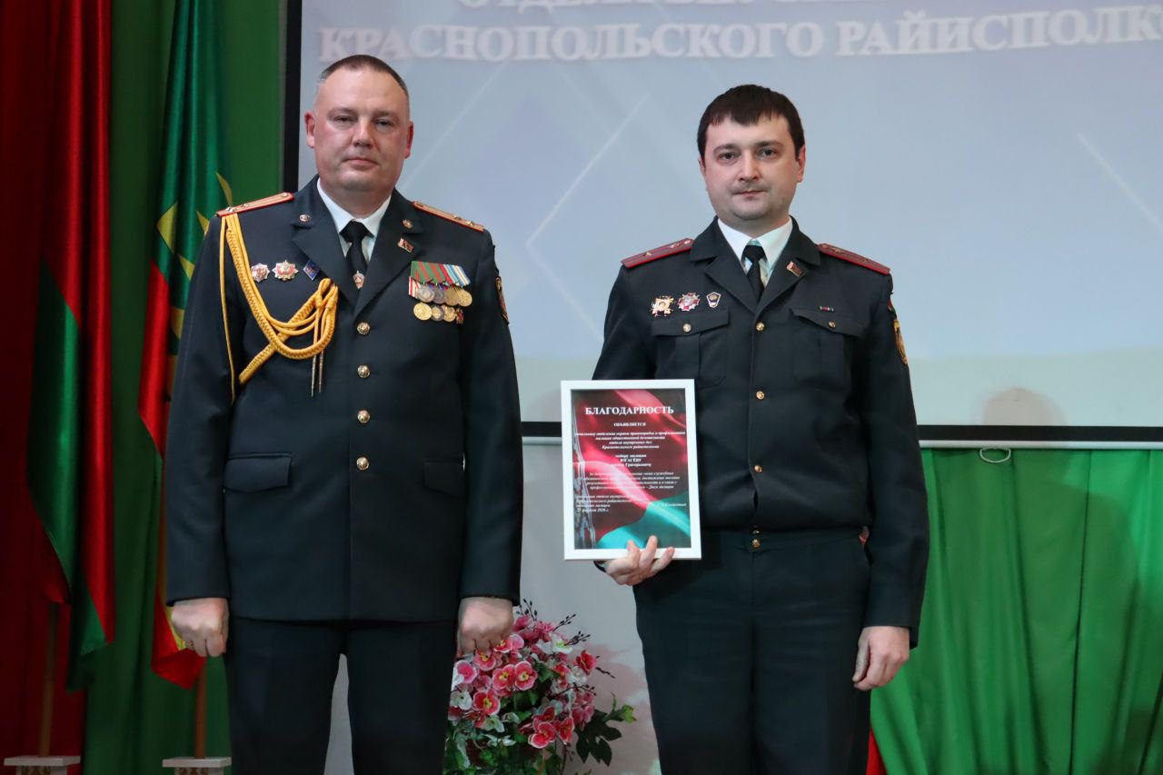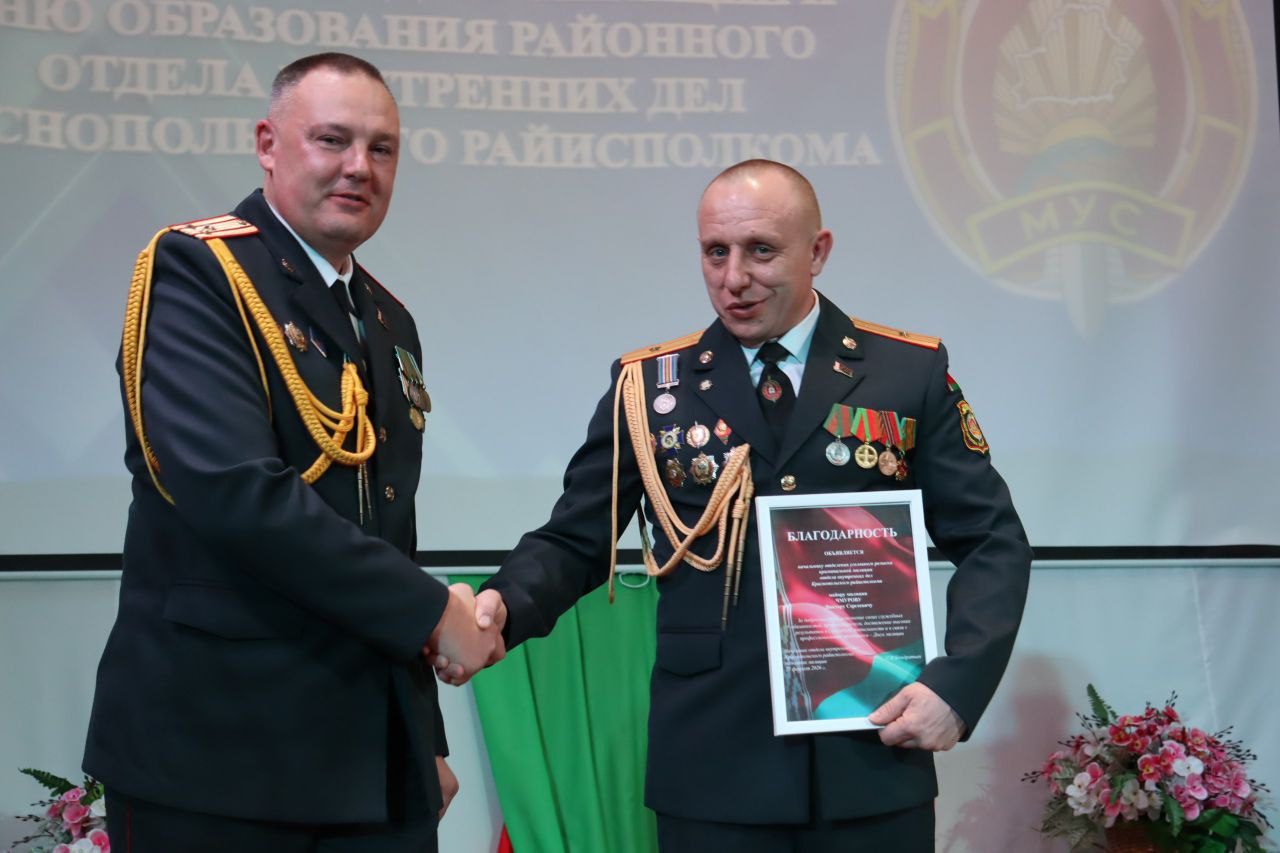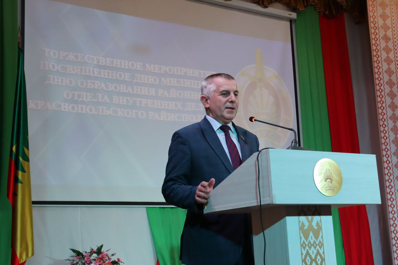 «На протяжении многих лет вы с честью исполняете свой долг, обеспечивая защиту населения, правопорядок и порядок на улицах Краснопольского района. Ваша служба – это призвание, которое требует мужества, отдачи, дисциплины, братского духа. Краснопольчане ценят вашу работу, верят и доверяют вам. Хочу сказать слова благодарности ветеранам, которые в свое время заложили ценности, подобрали себе смену и делились опытом с молодым поколением. Уверен, что в будущем сотрудники Краснопольского РОВД способны выполнить все задачи, обеспечивая правопорядок и стабильность в нашем обществе», – прозвучали слова поздравления от главы района Александра Ефимчикова.