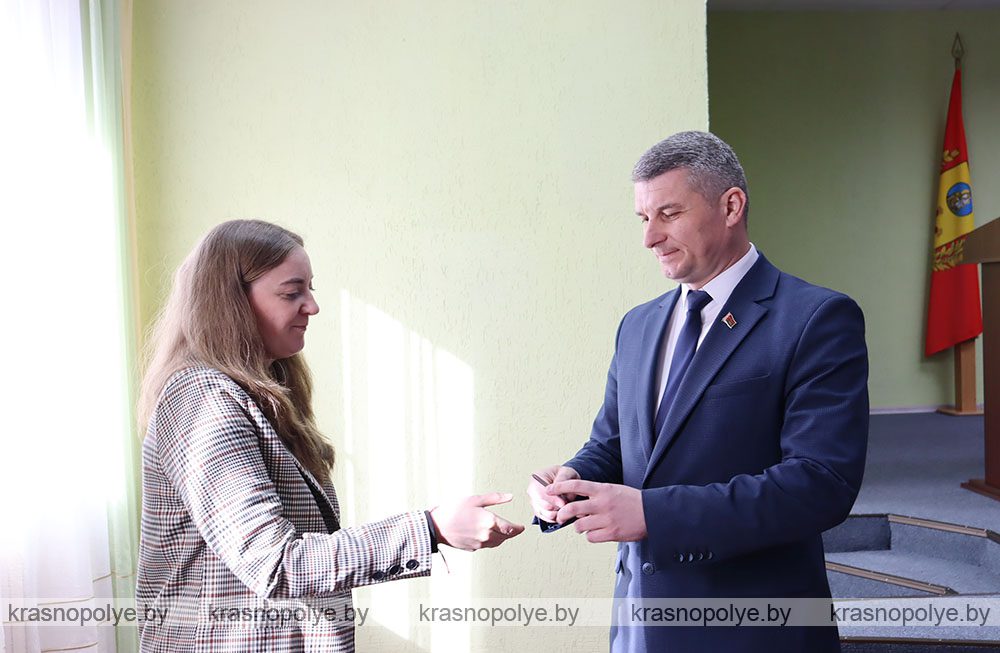 Также председатель райисполкома Александр Ефимчиков вручил удостоверение государственного служащего на должность главного специалиста отдела организационно- кадровой работы райисполкома  Поденковой  Ирине Максимовне, которая будет обеспечивать юридическое сопровождение деятельности  районного исполнительного комитета.