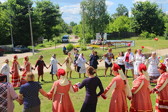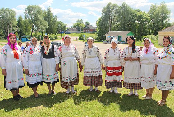 Звучат русские и белорусские народные песни в исполнении фольклорных ансамблей «Любовшаночка» (д. Любовшо, Россия) и «Горские хорошухи» (с. Горы, Республика Беларусь). Руководитель последнего – В.А. Марченко. Родом Валентина Александровна из нашего Красногорского района. Она родная сестра В.А. Константинова. «И вообще всех моих братьев и сестёр Бог талантом не обидел», — говорит она в беседе со мной. – Так уж получилось, что я, русская по рождению, а руковожу белорусским фольклорным ансамблем. И я не могу для себя определить, где заканчивается русская песня и начинается белорусская. Словно у меня два сердца. Сегодняшняя встреча – ещё одно доказательство нашего единства».