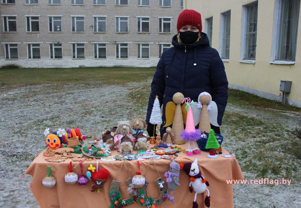 Учащиеся ГУО «Краснопольский районный центр детского творчества» подготовили для выставки изделия из фетра, лозы, глины, льна, поделки в технике папье-маше. Посетители рынка приобретали здесь фигурки домовых, ангелочков, поделки для детей, развивающие моторику, различные глиняные подвески.