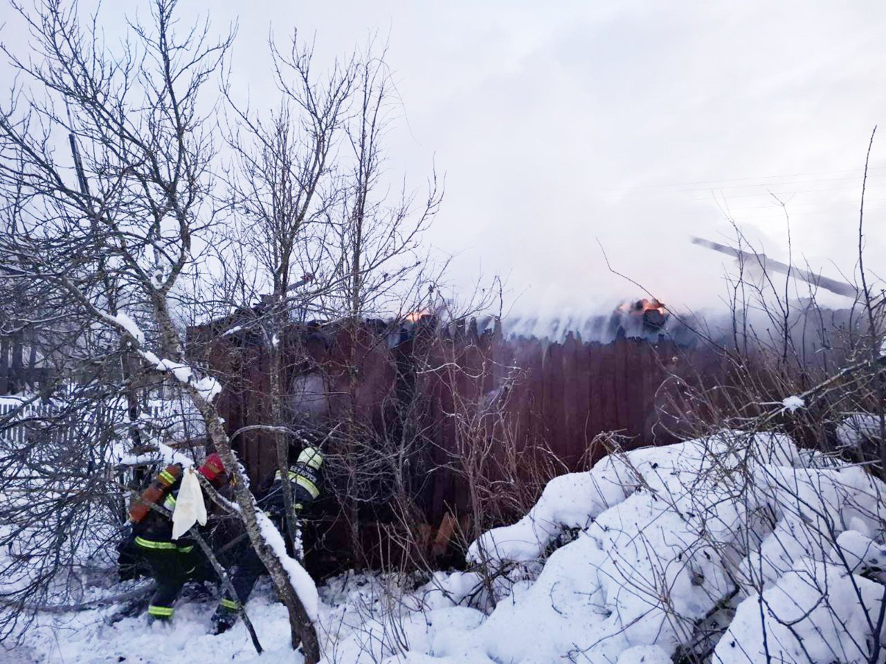 По прибытии к месту пожара происходило горение внутри и кровли дома открытым пламенем, создалось плотное задымление. Со слов соседей, внутри могли находиться люди.