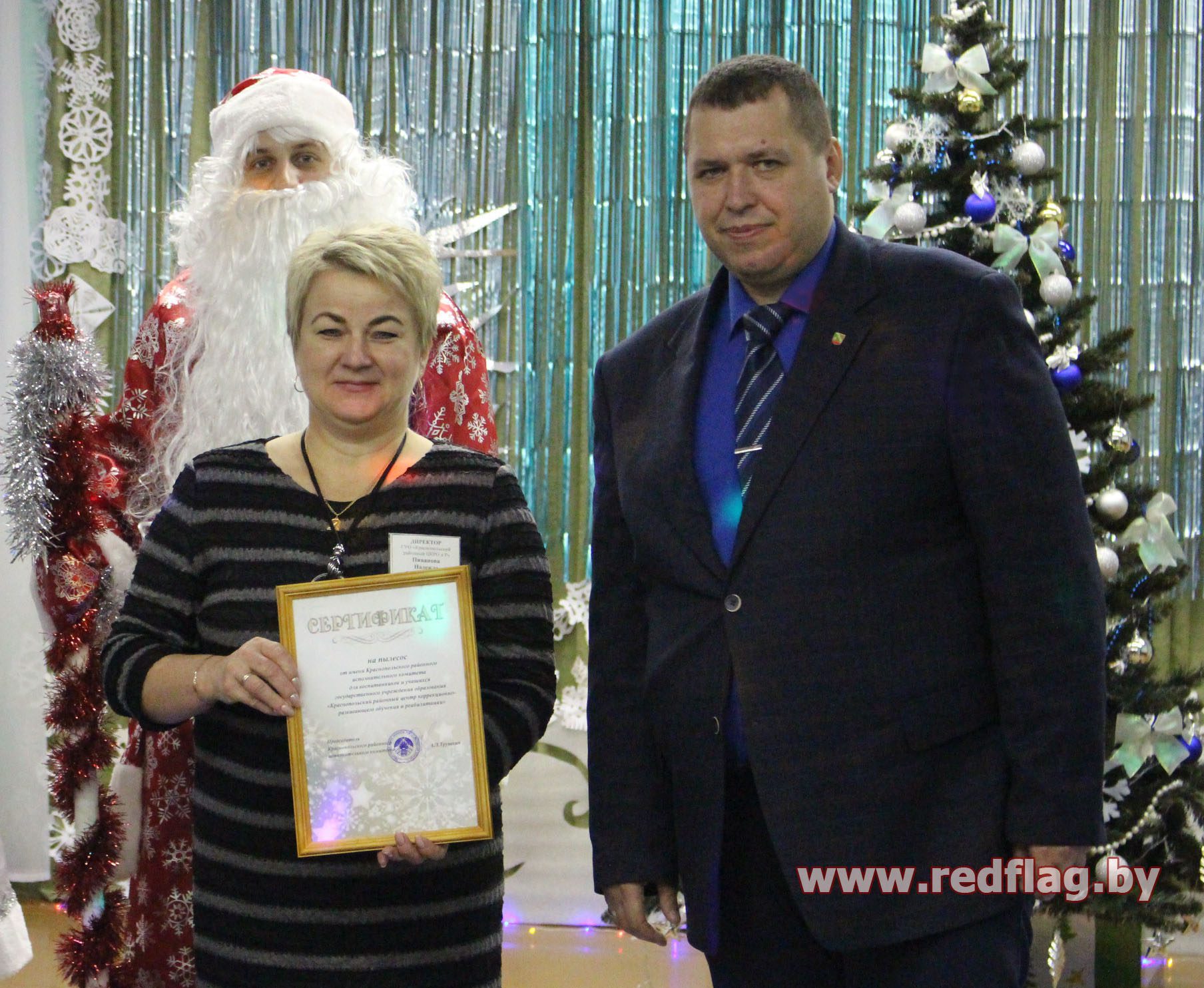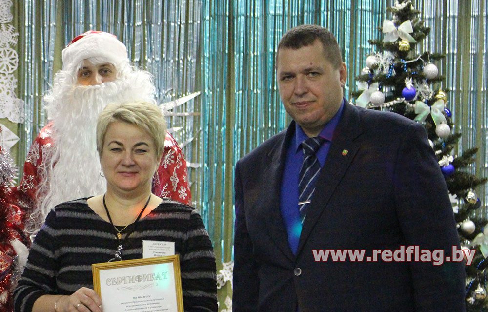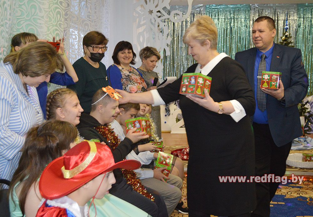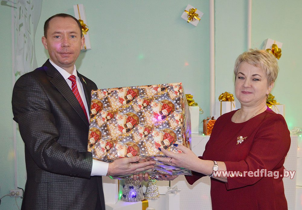 Приятную ноту в атмосферу торжества внесли и гости, присутствующие на празднике. В рамках новогодней благотворительной акции «Наши дети» А.Л. Трушкин от имени райисполкома для учащихся учреждения образования вручил подарочный сертификат на приобретение комплекта бытовых принадлежностей Центру в лице его директора Н.В. Пивановой. К поздравлениям присоединились и другие гости мероприятия – А.А. Гоман, С.А. Сыранков, Е.И. Чаюкова, Н.А. Синкевич, которые произнесли немало приятных и теплых слов в адрес педагогов и учащихся ЦКРОиР и вручили подарки. Также новогодние подарки (развивающие игрушки) ребятам в этот день были переданы индивидуальным предпринимателем Л.И. Котовой.