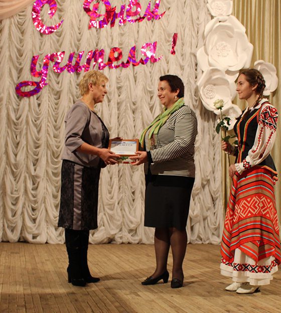 Адресуя всем педагогам пожелания счастья, крепкого здоровья, мира и добра, Анжелика Арнольдовна также отметила некоторых из них – председателя первичной организации РОО «Белая Русь» ГУО «Козельский УПК детский сад-средняя школа» Н.В. Шагову и учителя физической культуры и здоровья ГУО «Средняя школа г.п. Краснополье» Л. С. Евмушкову, вручив ценные подарки от районной организации РОО «Белая Русь».