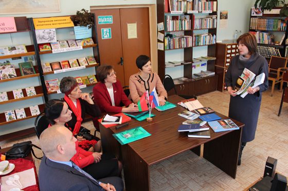 Не менее интересным продолжением заседания юго-западного творческого объединения журналистов стала встреча с директором Красногорской районной библиотеки Г.Н. Ставиновой, которая представила его участникам выставку, отражающую сотрудничество белорусов и россиян, ознакомила с историей Красногорского района, показав тематический фильм, и презентовала книжные издания, авторами которых выступили жители Красногорщины.