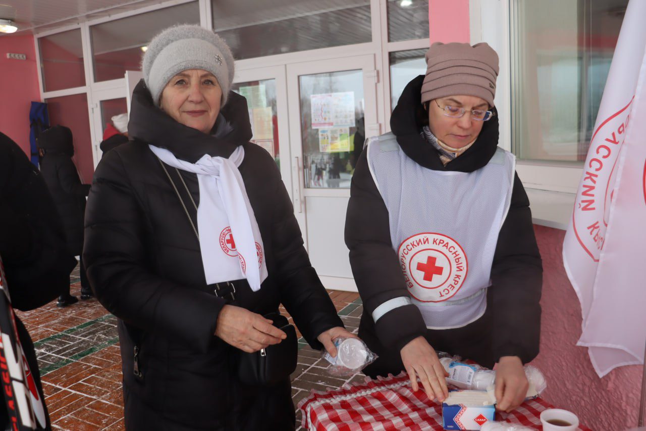На «Краснопольской лыжне-2026» спортсменов и гостей встречали волонтёры Красного Креста и торговая палатка Краснопольского ОСП Мстиславского райпо. Горячий чай согревал после забегов и создавал атмосферу дружеского общения.