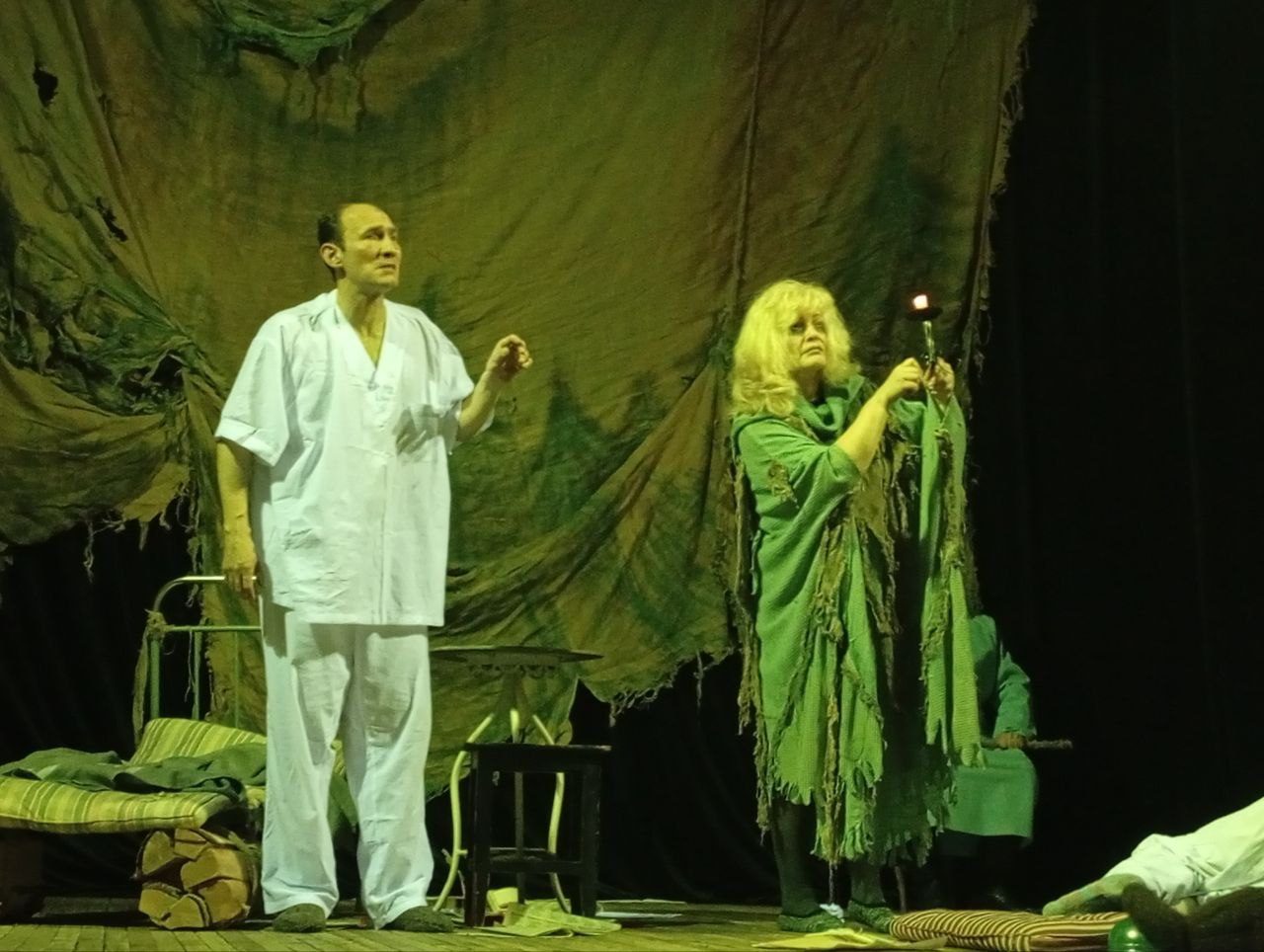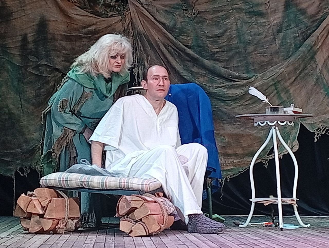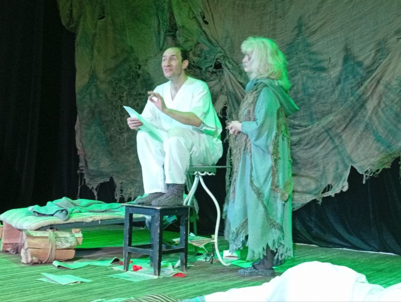 Что скажут об участии в спектакле бывалые актеры? Семейную пару сыграли Иван Ткачев и Елена Романенко. Это актеры с огромным опытом, их знают, любят и уважают. Лично мне было в удовольствие наблюдать за их игрой, взаимодействием и профессионализмом. Интересный факт: эти же роли Иван и Елена сыграли 25 лет назад в одноименном спектакле.