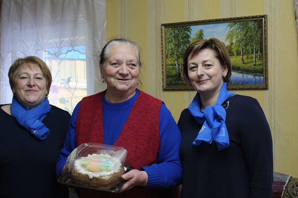 Лариса Ивановна была искренне рада гостям. Ее доброжелательность, радушие и позитивное отношение к жизни располагали к общению. Елена Ивановна Чаюкова рассказала хозяйке дома об общественном объединении «Белорусский союз женщин» и вручила сладкий подарок.