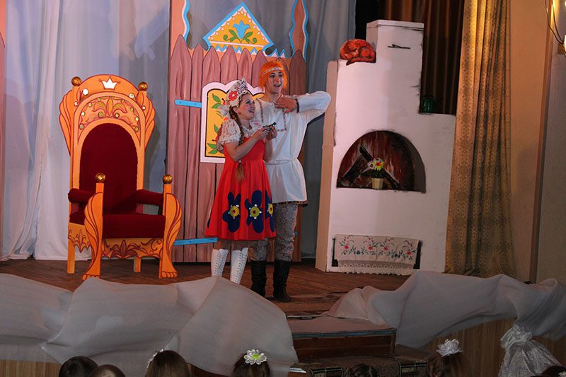 Подготовленная для ребят развлекательно-игровая программа послужила началом большого торжества, продолжившегося увлекательной новогодней сказкой-мюзиклом «Летучий корабль», поставленной артистами народного театра под руководством режиссера А.П. Кузнецова.