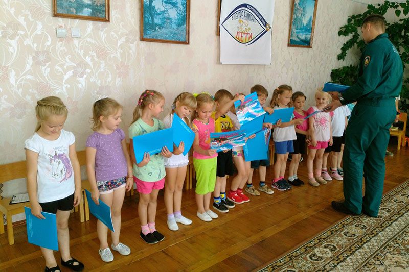 Для детей были организованы дни безопасности. Инспектор и воспитатели напоминали детям об основах безопасности жизнедеятельности. С детьми проводились интеллектуальные викторины, спортивные игры, профилактические беседы, давалась возможность побыть в роли спасателя и примерить на себе боевую одежду. В награду за знания детям раздавалась наглядно-изобразительная продукция. В конце мероприятий в детских садах проходила отработка действий в случае возникновения пожара.