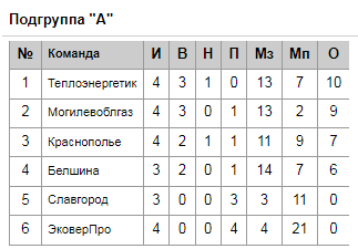 Турнирная таблица: