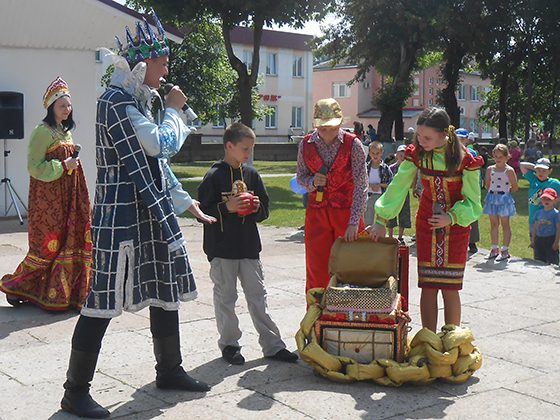 В прошедшую субботу в рамках V Межрегионального фестиваля-праздника любительских театров «Тэатральныя вечарыны — 2016» в городском сквере прошла сюжетно-игровая программа «Царь Игры», которую представил жителям поселка образцовый театр игры и юных ведущих «БИМ-БОМ» Могилевского областного центра творчества.