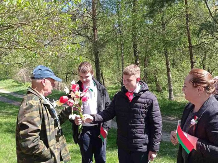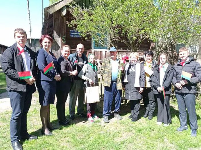 Поздравления от Главы государства Александра Лукашенко были вручены лицам, пострадавшим от последствий Великой Отечественной войны, начальником УТЗиСЗ Краснопольского райисполкома О.П. Шеменковой, заместителем начальника УТЗиСЗ О.Н. Юденковой, заместителем директора учреждения «Краснопольский РЦСОН» Н.В. Геращенко, председателем районной организации БКК И.И. Бобровник, пионерами ГУО «Краснопольская районная государственная гимназия».