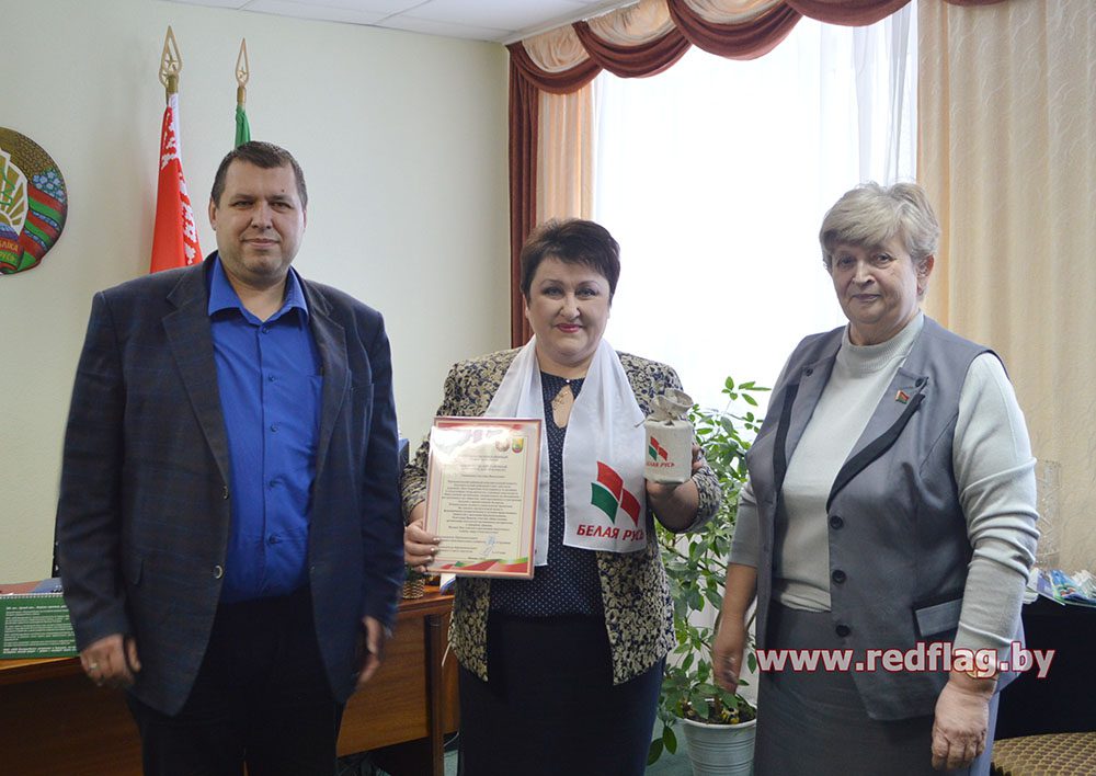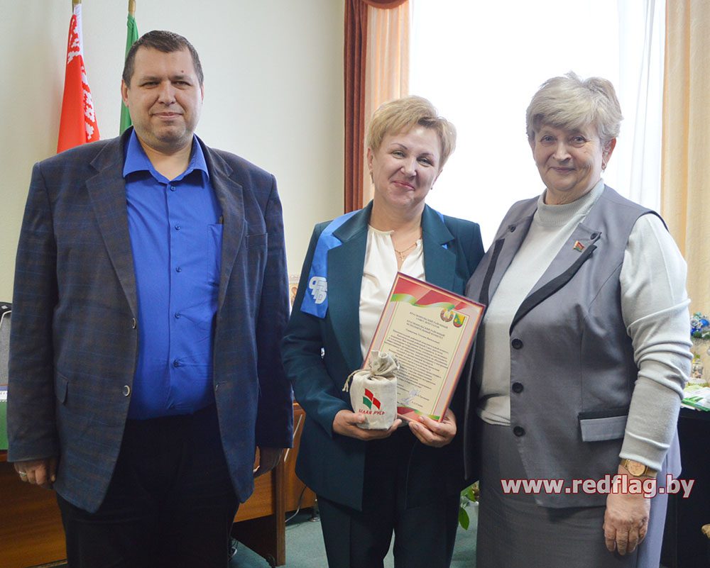 Председатель районного Совета депутатов, председатель районной организации РОО «Белая Русь» А.А. Гоман искренне поблагодарила всех за эффективную и результативную работу с общественным объединением, проведение очень важных совместных социально-значимых акций и вручила сувенир от РО РОО «Белая Русь», в том числе начальнику отдела идеологической работы, культуры и по делам молодежи С.А. Сазоновой.
