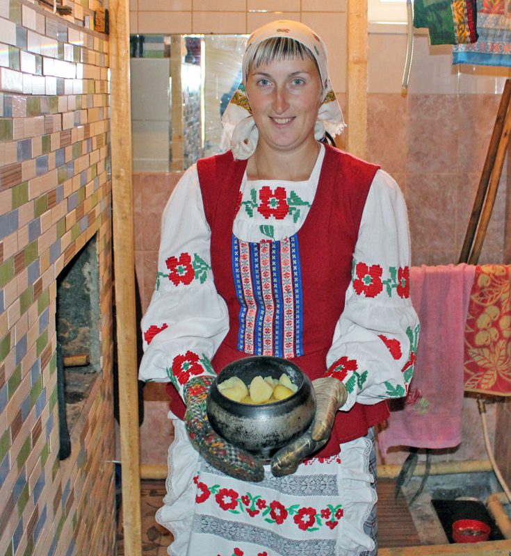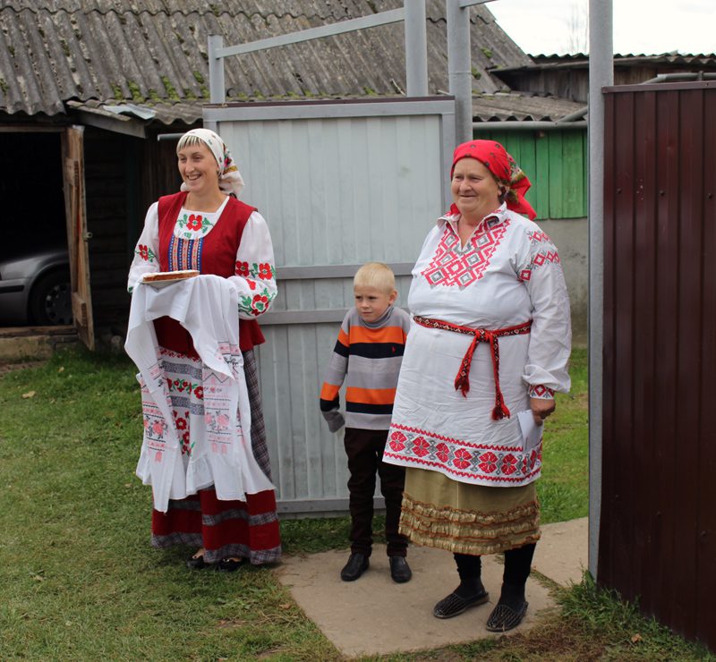 Семья Веремьевых, проживающая в д. Палуж, встретила своих гостей шутками и прибаутками. Стоя около калитки в национальных костюмах и держа в руках хлеб–соль, с улыбкой на лице они приветствовали членов жюри. На сельском подворье гостей ожидал накрытый стол с фруктами и овощами, разнообразными закатками, сделанными заботливыми и трудолюбивыми руками хозяюшки Екатерины Веремьевой и ее свекрови Валентины Леонидовны. А в доме – традиционные блюда белорусской кухни, только что из печи.
