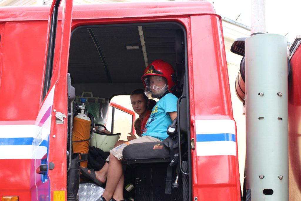 По уже сложившейся традиции не обошлось в тот день и без демонстрации детям боевой техники спасателей-пожарных, пожарного обмундирования и элементов боевого развертывания, пользующихся неизменным успехом у зрителей.